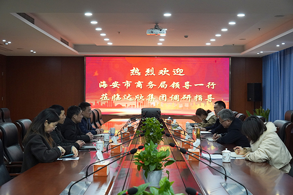3月3日上午,海安市商務局黨組書記、局長馮永進,副局長史霞兵一行蒞臨集團開展工作調研。董事長馬和軍、常務副總經理王邦國等陪同。
