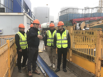 在聽取項目負責人簡單的匯報后,杭書記深入施工一線,對項目現場進行了巡視,查看了項目建設進度、安全、質量、文明施工等情況,詢問了建設過程中存在的問題和困難,并提出合理化意見和建議。他鼓勵大家要齊心協力、克服當前暫時的困難,保持集團標桿項目的工作態度和打造精品的精神,繼續打造觀摩工地,樹立品牌形象,早日向業主方交出滿意答卷。